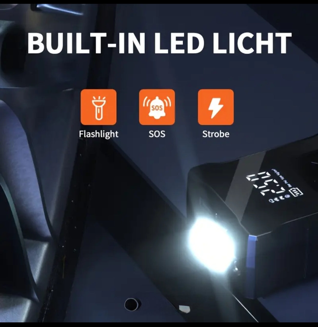 Featuring a clear digital pressure display and auto shut-off function, the pump allows you to set your desired PSI level and inflates precisely without over-inflating. The built-in LED light provides visibility during night-time emergencies, making it a reliable companion for roadside situations or outdoor activities.